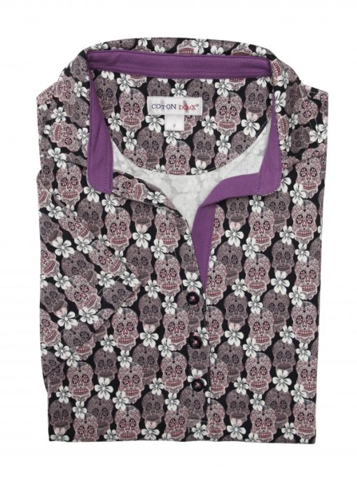 The symbolic height of this art style is the particular genre of the still life… So bring this skull and flower print polo to life! For every evening out or restaurant, its mercerized cotton jersey composition and slim fit will be there to make you feel at ease. Its cotton piqué collar and three-button placket will be here to maintain the presence of a woman of character! Match it with a black leather skirt accompanied by beautiful heels and the eyes will be turned towards you!