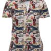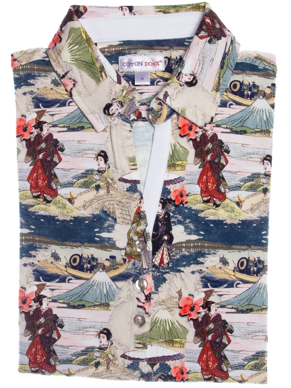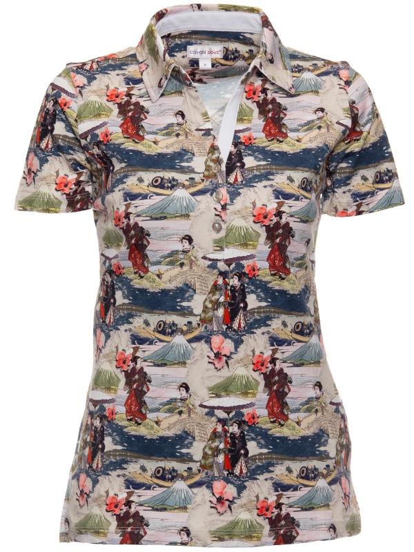 Coton Doux Women’s Slim Fit Polo With Vintage Japenese Print