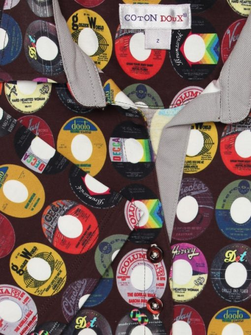 Nostalgic for the old ways of playing your favourite songs? Then don’t hesitate to slip on this mercerized cotton jersey polo shirt with its vinyl print! Its originality will only be matched by its lightness. The cotton piqué collar and the slim fit will not make you say otherwise. The burgundy background will be ideal to pair with light grey trousers to form your outfit of the day! But don’t forget to fasten the buttons on your three-button placket before going out.