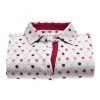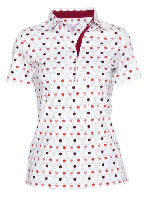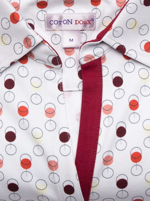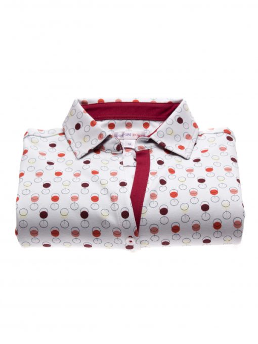 Whether your favorite is red, white or rosé, wine tasting will be complete on this polo shirt with wine glass print! Discreet thanks to the work of geometric shapes, you will appreciate wearing it on colored shorts or in a very chic way on white trousers. Composed of a triple buttons, a cotton piqué collar and a pretty fitted cut, this polo shirt combines elegance and comfort. A great cru!