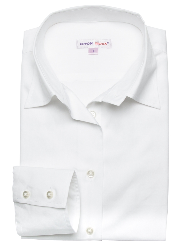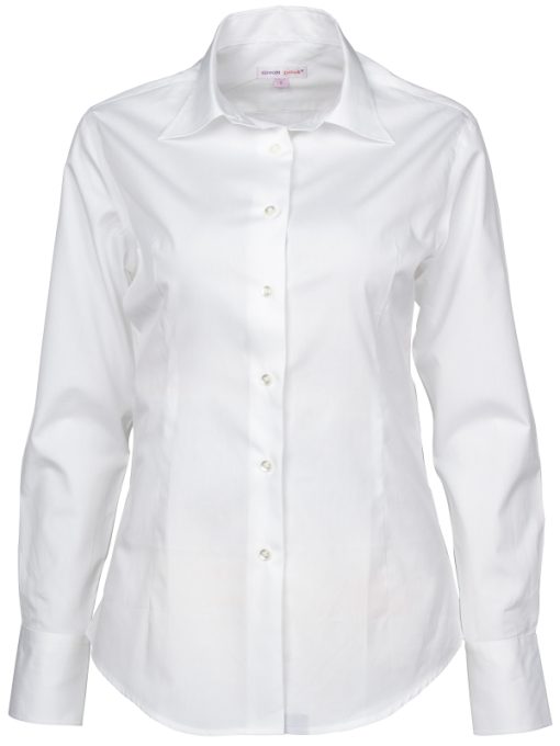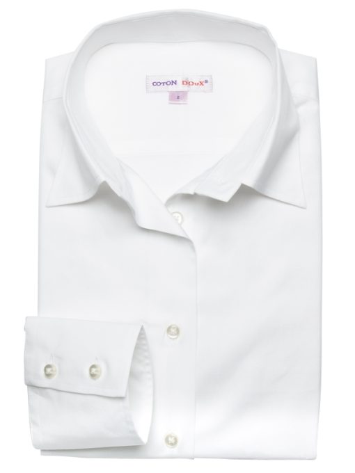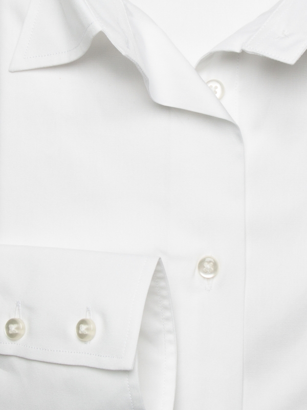 Upgrade your wardrobe with our women’s white poplin fitted shirt. Featuring a classic collar and double-button cuffs, this shirt is tailored in a slim fit for a sleek, flattering silhouette. Crafted from crisp white poplin. Whether styled with tailored trousers for a sharp office look or paired with jeans for a chic, everyday ensemble, this shirt ensures you always look effortlessly polished.